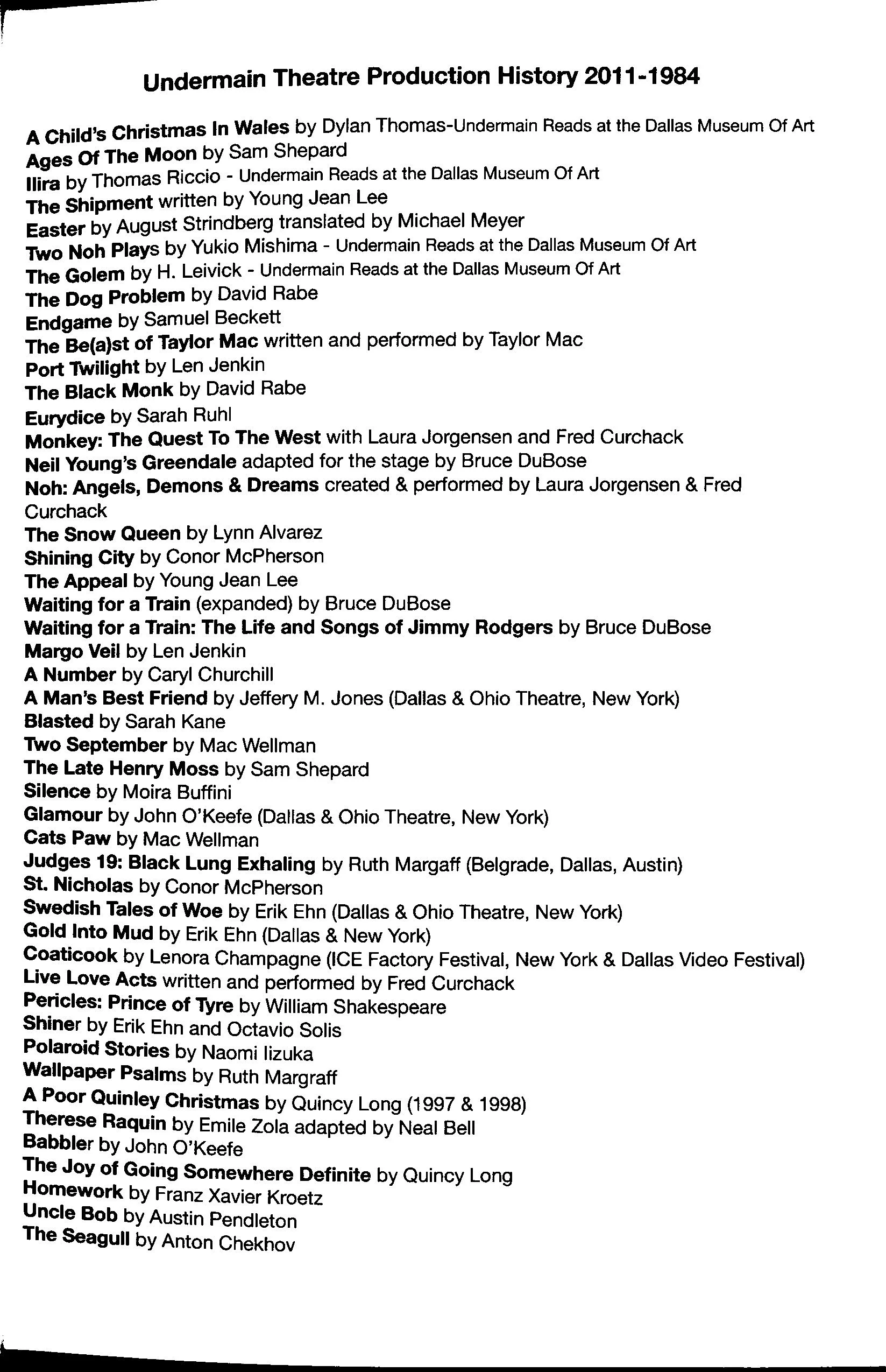 February 15 – March 17, 2012 at Undermain Theatre
